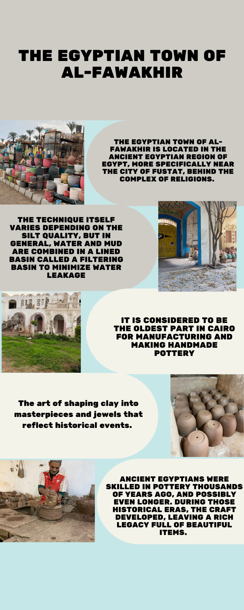 The art of shaping clay into masterpieces and jewels that reflect historical events. Also, everything that is important to have, everything that can be used in daily life, including works of art and antiquities, may be found in the village of Fawakhir, some of which can be used for practical purposes.